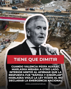 El ministro del Interior tenía la obligación de asumir el mando único cuando la catástrofe superó los medios autonómicos. El texto legal lo permite “por propia iniciativa”, pero el Gobierno no lo hizo. La tragedia del 29 de octubre de 2024, que arrasó municipios de l’Horta Sud como Paiporta, Catarroja o Massanassa, dejó al descubierto… Lee más: Cuando Valencia pedía auxilio, Marlaska miraba a otro lado. Interior mintió al afirmar que la respuesta fue “rápida y ejemplar” Marlaska violó la Ley 17/2015 al no declarar la emergencia nacional - “Pilar Bernabé desapareció durante la DANA: cuando más lo necesitaban, el Estado no estaba”